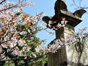 東山七条にある真言宗智山派の総本山、智積院。第一代化主(けしゅ=住職のこと)である玄宥の像の北側にある桜が満開です。総門の両脇をはじめとして、広い境内にある桜は、これから開花といったところです。