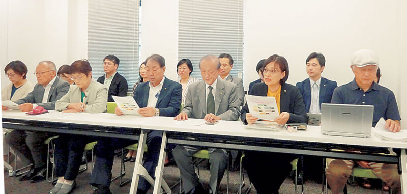説明を行った加藤あい幹事長は、2年がかりで専門家との研究会を重ねる一方、各地の若手農家などとの懇談をし、意見や要望を聞いてきたことを紹介。「都市農地を守ることは、住みよいまちづくりとも直結している。市民農園などへの根強い人気もあり、都市農業が市政にしっかりと位置づけられるよう議会論戦を強化していきたい」と述べました。