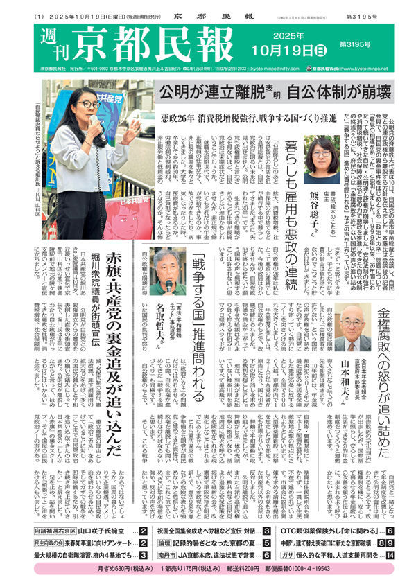 今週の「週刊しんぶん京都民報」の1面と見どころをお届けします。