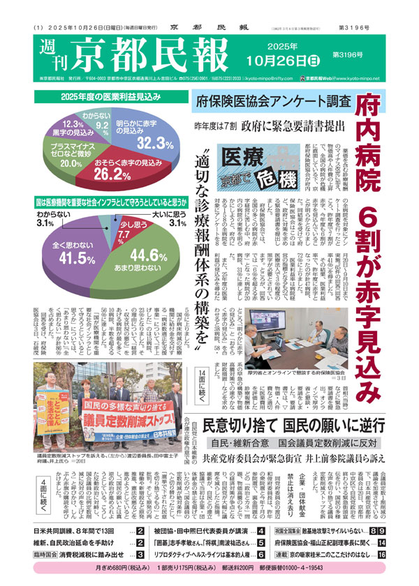 今週の「週刊しんぶん京都民報」の1面と見どころをお届けします。