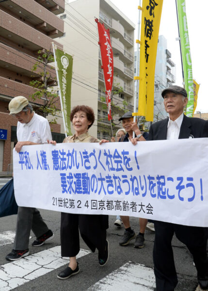 「平和、人権、憲法がいきづく社会を。要求運動の大きなうねりを起こそう」をスローガンに21世紀第24回京都高齢者大会(同実行委員会主催)が18日、京都市中京区のラボール京都で開かれ、全体会と分科会合わせて延べ365人が参加。終了後に同区の四条大宮までデモ行進しました。