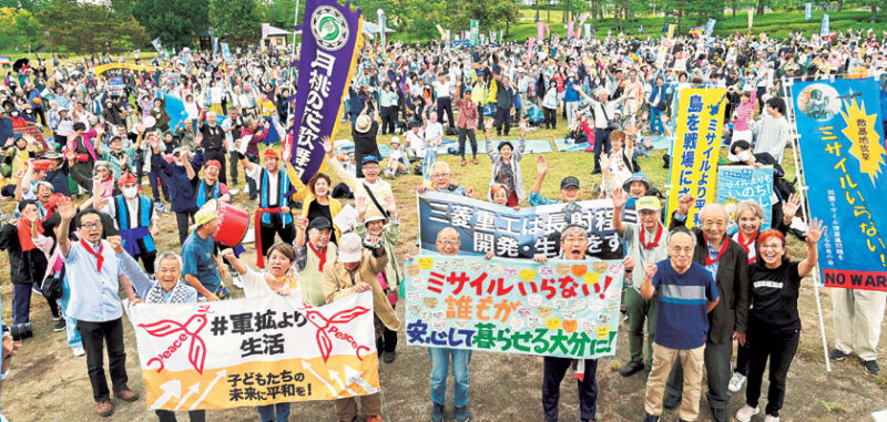 集会の最後に「大軍拡・戦争準備に反対する全国の皆さんとつながり、手を取り合い、戦争への道を押しとどめましょう」との集会宣言が採択されました。