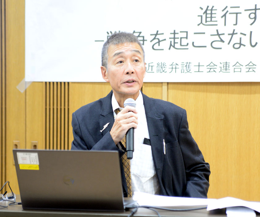 安保3文書策定以降、九州や沖縄、南西諸島を中心に全国でミサイル配備や弾薬庫増設など基地強化が進んでいいます。近畿2府4県で進行するこうした軍拡の状況を共有し、戦争を起こさせないために市民ができることを考える憲法市民講座(近畿弁護士連合会主催)が10月25日、京都市中京区の京都弁護士会館で開かれました。
