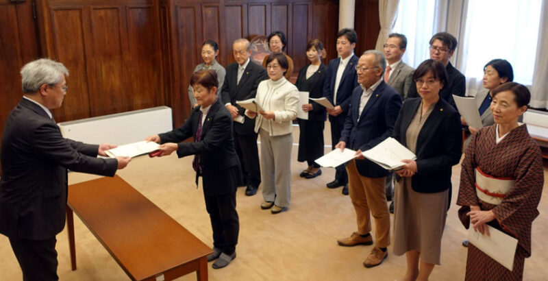 要求項目は、▽自治体の公的責任の発揮▽複合災害に備えたまちづくり▽気候危機打開へ脱原発推進・再エネ普及▽福祉・医療の充実▽子どもの発達を保障する教育▽ジェンダー平等社会の実現▽市民の足を守る―など15の柱で構成しています。