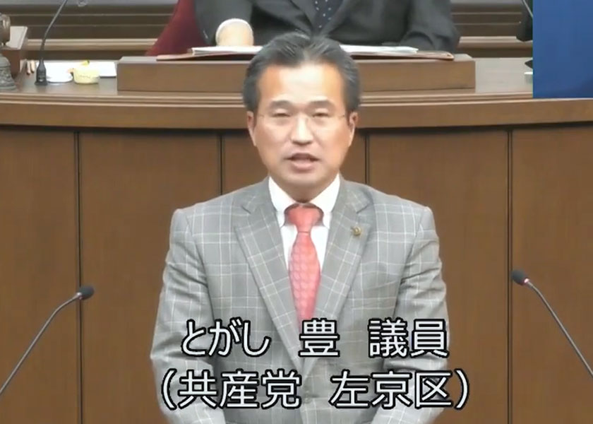 日本共産党京都市議団は11月25日、開会された11月定例市議会本会議に世界遺産保護条例案を提案し、冨樫豊議員が提案理由の説明を行いました。