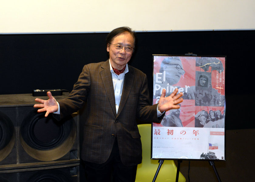チリ出身で、ラテンアメリカを代表するドキュメンタリー映画監督、パトリシオ・グスマンの幻の長編デビュー作『最初の年―民意が生んだ、社会主義アジェンデ政権』(1971年制作)が半世紀の沈黙を破り、日本初公開。現在、アップリンク京都(京都市中京区)で上映中です。12月7日には、日本共産党の前参院議員・井上哲士氏が、アップリンクの浅井隆社長とアフタートークしました。