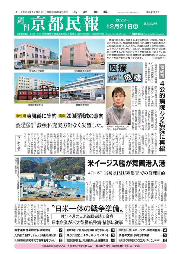 今週の「週刊しんぶん京都民報」の1面と見どころをお届けします。
