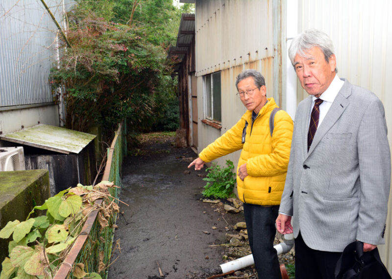 小林市議は、ふん尿の流出は昨年10月頃から2、3日に一度の頻度で続いており、住宅の敷地に幅約1㍍、奥行き約10㍍に渡って堆積していることを告発。この間、行政としてのどのように対応してきたかについて質問しました。