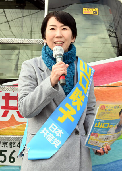 宣伝では、同党の島田けい子府議、山田こうじ、えもとかよこ両京都市議、井上哲士前参院議員も弁士を務めました。