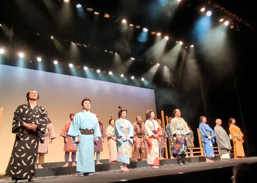 開演に先立ち、同後援会の原田完事務局長があいさつ。初日(4日)に観劇した堀川あきこ衆院議員は、「阿国の自分の人権と尊厳を大事にしたいという思いはいつの時代も同じ。高市政権は一人一人の人権や尊厳、平和をないがしろにしている。こんな政治を変えるため、総選挙で自民党政治に審判を下し、4月には『自民党政治言いなりの知事でいいのか』の声を京都からつきつけよう」と訴えました。