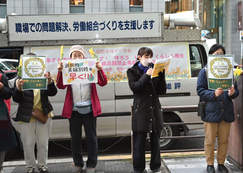 しかし、昨年の参院選後、高市氏が首相に就任し、実現の流れを阻害。連立政権を担う維新の会との合意文書に、「同一戸籍・同一氏の原則を維持」「旧姓の通称使用の法制化法案」を26年の通常国会で成立をめざすこと明記。第6次男女共同参画計画の答申案に突然、「通称使用の法制化」の検討を盛り込みました。高市首相は、ジェンダー平等を求める多くの国民の願いに逆行し、夫婦同姓の固定化を狙っています。