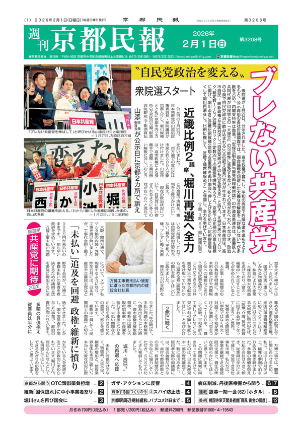 今週の「週刊しんぶん京都民報」の1面と見どころをお届けします。