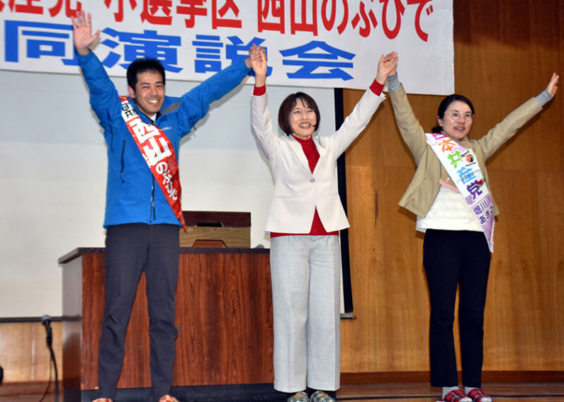 西山候補は、先日行われた候補者討論会で、共産党以外の京都3区の各候補がそろって大軍拡やむなしと述べ、自民、維新の候補は増税も必要と発言したことを紹介。大軍拡を許さず暮らしを守るためにも、堀川候補とともに国会に送ってほしいと訴えました。