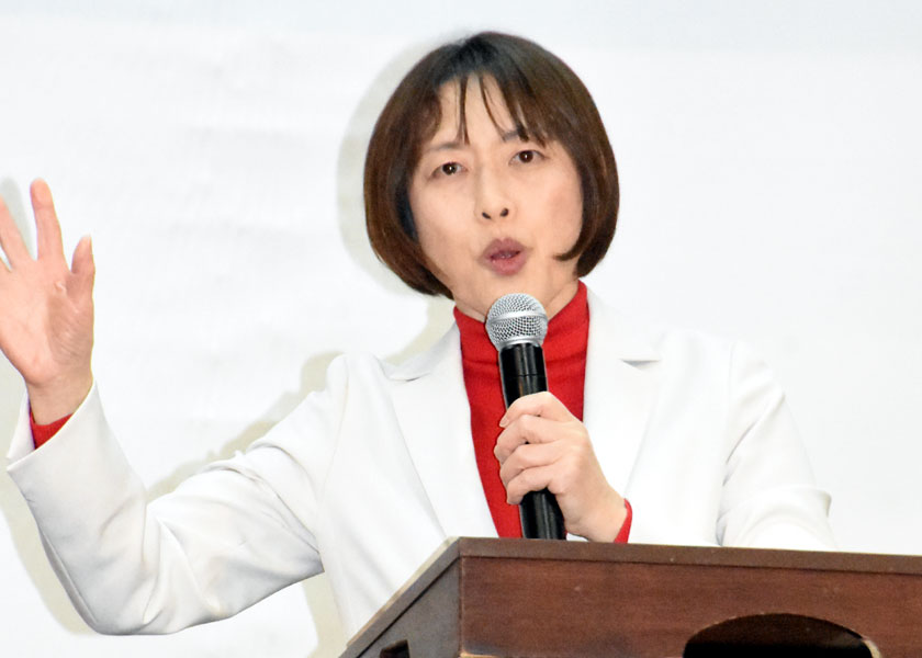 衆院選(2月8日投票)が終盤を迎え、比例代表が大激選となっているもと、日本共産党の田村智子委員長は4日、四条大宮での街頭演説に続いて、京都市伏見区での演説会で訴えに立ち、「憲法守れ、大軍拡ノーと言える共産党の議席がどうしても必要です。『比例は共産党』の声を広げ抜いて、近畿ブロック(定数28)で2議席を確保させてほしい」と力を込めて訴えました。会場いっぱいの参加者を前に、堀川あきこ近畿比例候補(京都2区重複)、京都3区・西山のぶひで候補も一緒に訴えました。