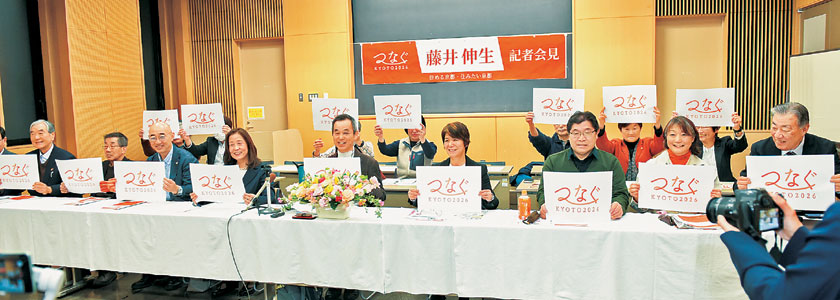 【4・5知事選】「つなぐKYOTO2026」発足、藤井伸生氏と協定 「住める京都、住みたい京都」実現へ31項目の政策(素案)発表