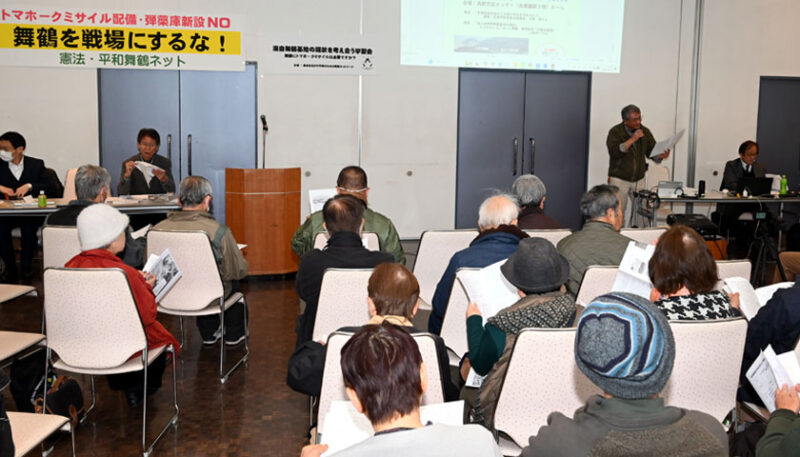 海上自衛隊舞鶴基地所属のイージス艦へのトマホーク配備反対を訴えようと、舞鶴市内で5月31日に開催される「5・31 Peace Action in 舞鶴」(同実行委員会主催)の成功に向けた学習会(憲法・平和舞鶴ネット主催)が2月28日、舞鶴市西駅交流センターで開かれ、市民70人以上が参加。参加者から約4万円のカンパが寄せられました。