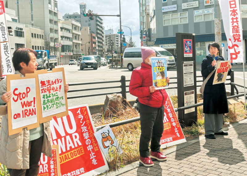 命奪う戦争止めたい 米国・イスラエルのイラン攻撃中止訴え/共産党西地区委員会が街頭宣伝