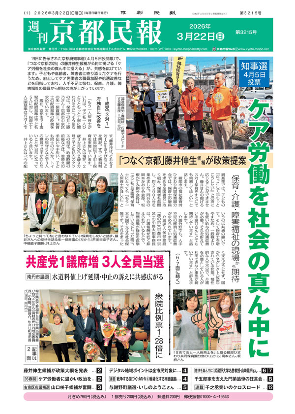 【今週の京都民報】3月22日付