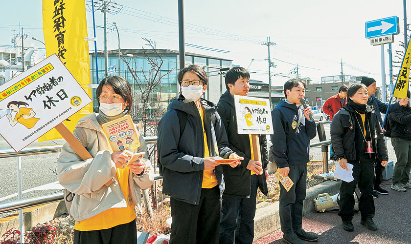 ケア労働者の専門性に見合った処遇を 26春闘統一行動 福保労が街頭行動、「ケア労働者の休日」もアピール