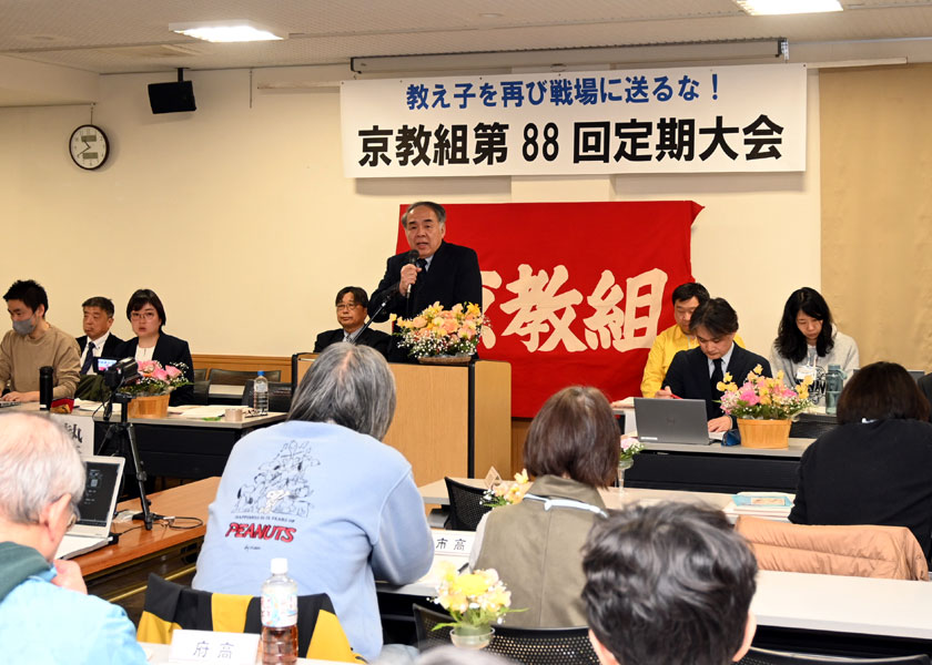 京都教職員組合は3月7日、第88回定期大会を京都市左京区の京都教育文化センターで開き、▽生活と権利を守る▽憲法と子どもの権利条約にもとづく民主教育の前進めざす▽憲法を生かし、平和と民主主義を守る▽組織の強化を進める─取り組みなどを重点とする26年度運動方針を確認し、新役員を選出しました。