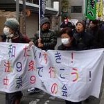 小雪のちらつく9日、「憲法9条を守ろう」、「平和憲法を世界にひろげよう」、「集団的自衛権の行使は許さないぞ!…