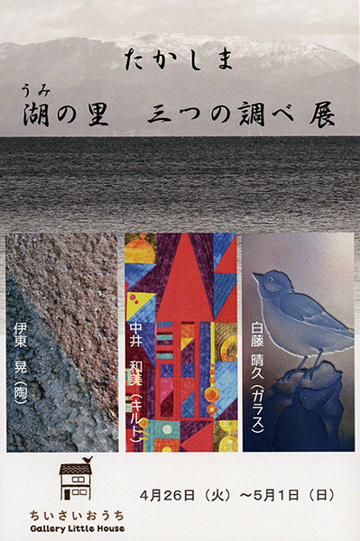 湖(うみ)の里たかしまを拠点に、 豊かな自然と暮らしに育まれた感性によって生まれた 三者三様の作品をご高覧下さい。