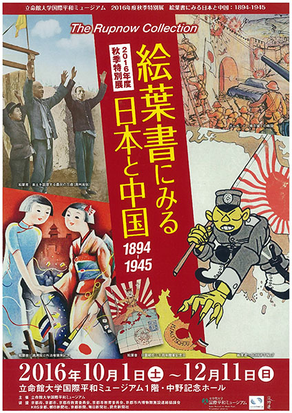 https://www.kyoto-minpo.net/event/archives/2016/10/01/post-25609.phphttps://www.kyoto-minpo.net/event/wp-content/uploads/2016/10/20161001-04.jpghttps://www.kyoto-minpo.net/event/wp-content/uploads/2016/10/20161001-04-150x150.jpg美術館10月1日(土)~12月11日(日)9時半~16時半(月曜休、但し祝日開館翌日休。11月4日(金)・11月24日(木)休。入館16時まで)、立命館大学国際平和ミュージアム1F・中野記念ホール(京都市北区等持院北町56-1。市バス「立命館大学前」下車。Pなし)TEL075・465・8151。※ご来場の際は公共交通機関をご利用ください 世界的な絵葉書コレクターであるドナルド・ラップナウ氏の絵葉書コレクションの日本初公開となります。絵葉書を中心に、戦争柄の着物や風呂敷、情報宣伝に用いられた資料など、ラップナウ氏のコレクションからの出品を中心に展示を展開。 日清戦争から第二次世界大戦終結までの約半世紀、日本は中国大陸への侵出を進め、やがて侵略戦争を起こして敗北するという結果に終わりました。この間、日本と中国は互いをどのように捉えていたのか、世界はこの時期の日本と中国をどう見ていたのでしょうか。日清戦争、日露戦争、義和団事件、21か条の要求、パリ講和会議、満州事変、日中戦争などの日本、中国に関する歴史的出来事が絵葉書及びその他の資料にどの様に描かれていたのかを追います。 一般400円、高中生300円、小学生200円。※常設展も見学可 ※関西文化の日[11月19日(土)・11月20日(日)]は無料 問い合わせTEL075・465・8151(立命館大学国際平和ミュージアム)。kyomin-minpo seinen@kyoto-minpo.comAdministrator京都イベントなびスポンサーリンク