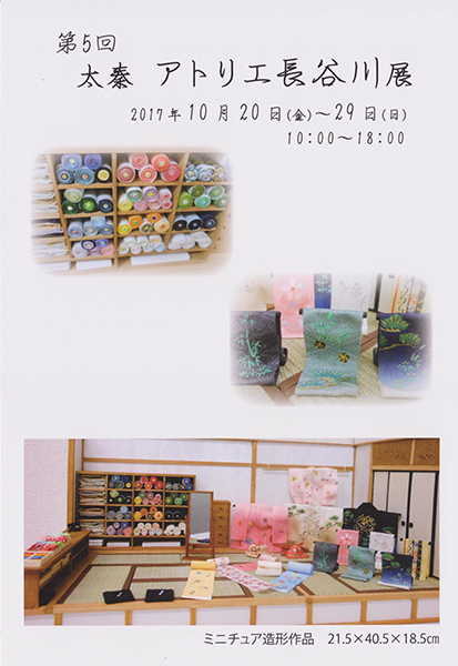 10月20日(金)~10月29日(日)10時~18時、太秦アトリエ長谷川(京都市右京区太秦安井春日町8-25。JR嵯峨野線「円町」より徒歩15分、または市バス「木辻南町」下車徒歩3分。Pなし)。