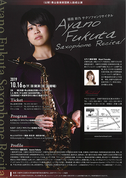 出演= 福田彩乃(サクソフォン)、東坂萌里(ピアノ)