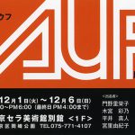 12月1日(火)~12月6日(日)10時~18時(最終日は16時まで)、京都市京セラ美術館別館1F(京都市左京区岡崎最勝寺町13〔岡崎公園内〕。市バス「岡崎公園美術館・平安神宮前」下車すぐ。Pなし、周辺に有料あり)TEL075・771・4107。 出品者=門野里栄子、木宮綾乃、平井真人、宮里由紀子、…