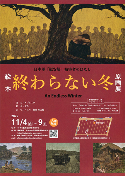 【関連イベント】著者と絵作者よるギャラリートーク/11月5日(水)・11月8日(土)、14時~14時半テーマ=「平和は与えられるものではなく、守っていくべきもの」11月5日(水)、カン・ジェスクさん(著者)11月8日(土)、イ・ダム キム・クンヒ夫妻(絵作者)kyomin-minpo