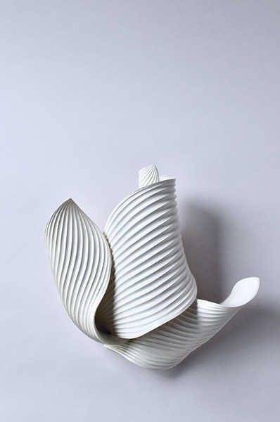 「末枯葉のかたちや、枯れ巻いた葉脈の流れにインスピレーションを受けています。一枚一枚の葉は時を経て姿を変え、それぞれの歴史や痕跡を宿す。その生き様を映す風貌に物語を感じたとき、制作の源泉が湧いてきます」と作家は語ります。