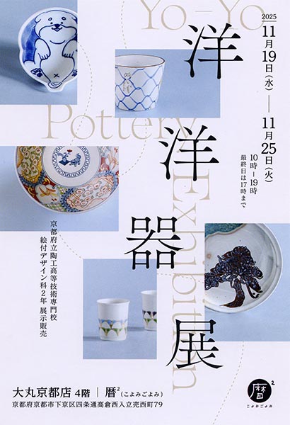 https://www.kyoto-minpo.net/event/archives/2025/11/19/post-89810.phphttps://www.kyoto-minpo.net/event/wp-content/uploads/2025/10/20251119-03.jpghttps://www.kyoto-minpo.net/event/wp-content/uploads/2025/10/20251119-03-150x150.jpg画廊・ギャラリー11月19日(水)~11月25日(火)、10時~19時(最終日17時まで)、大丸ミュージアム 暦²(京都市下京区四条通高倉西入ル立売西町79番地〔大丸京都店4F〕。阪急京都線「烏丸」より徒歩1分。Pあり)TEL050・1790・3000。 京都府立陶工高等技術専門校 絵付デザイン科2年 展示販売。 問い合わせTEL050・1790・3000(大丸京都店)。kyomin-minpo seinen@kyoto-minpo.comAdministrator京都イベントなびスポンサーリンク