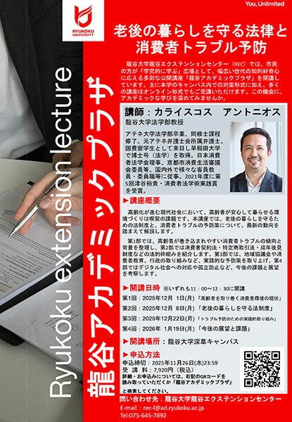 問い合わせTEL075・645・7892(平日9時~17時)、✉rec-l@ad.ryukoku.ac.jp(龍谷大学龍谷エクステンションセンター)。