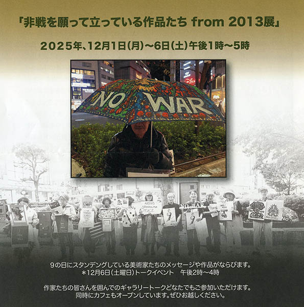 【関連イベント】トークイベント/12月6日(土)14時~16時、同会場作家たちの皆さんを囲んでのギャラリートーク。無料。※カフェもオープンしますkyomin-minpo