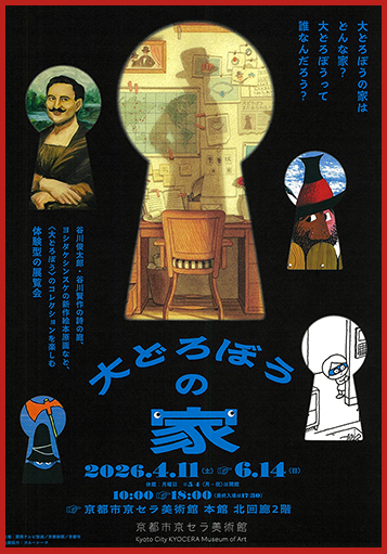 同展は、最後の盗みに出て留守中の、かの有名な「大どろぼう」の家に来場者が忍び込むという設定の、“来場者が主役”の展覧会です。回廊、応接室、隠し部屋など8つの部屋に分けられた展示室には、どろぼうの肖像画や変装道具、さらには著名作家たちの美術品のほか、星、靴下など謎が謎を呼ぶコレクションが並びます。来場者は無事に大どろぼうの家から抜け出て、この家に住む大どろぼうの正体を突き止めることができるでしょうか。