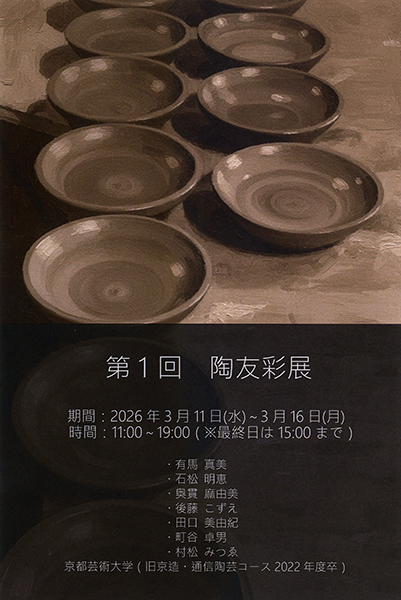 3月11日(水)~3月15日(日)11時~18時(3月13日は19時まで。最終日17時まで)、堀川御池ギャラリーC(京都市中京区油小路通御池押油小路町238-1。地下鉄東西線「二条城前」2番出口から徒歩約3分。Pなし)TEL075・255・9023。※ご来場の際は公共交通機関をご利用下さい