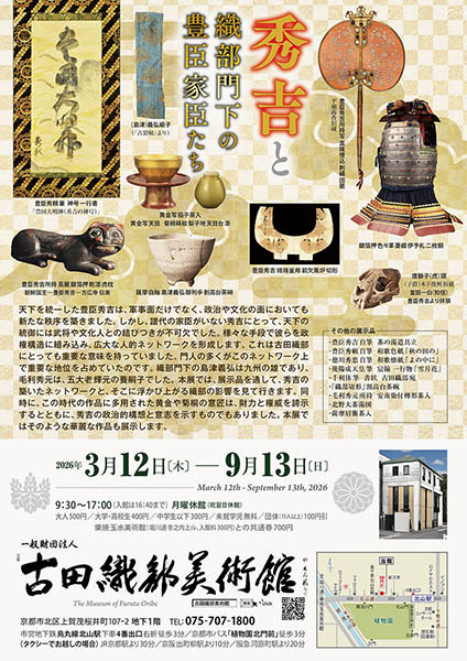 3月12日(木)~9月13日(日)9時半~17時(月曜休、ただし祝日の場合は翌日休。入館は16時40分まで)、古田織部美術館(京都市北区上賀茂桜井町107-2 B1F。地下鉄烏丸線「北山」4番出口より右折徒歩3分)TEL075・707・1800。