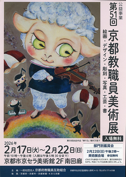 2月11日(水)~2月15日(日)10時~17時、京都精華大学 (京都市左京区岩倉木野町137。叡山電車「京都精華大前」駅すぐ。Pなし)TEL075・702・5197。※ご来場の際は公共交通機関をご利用ください