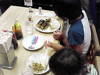 投票を済ませてから、広島へ着いたのはお昼。とーとーの好物の広島風お好み焼きを食べました。ぴーたーは、ちょっぴり熱いのは苦手なので冷めてからパクパクと食べていました。