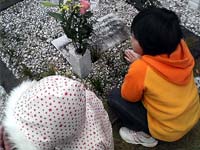 ねーねーは、かーかーやおじちゃん・ばあちゃんと共にお墓にお祈りの言葉を唱えていました。浄土真宗の家庭で育ったとーとーは、キリスト教のお祈りの言葉を全く知りません。「南無阿弥陀仏」ぐらいしか言えないので、お祈りのときぴーたーとただ立っているだけでした。