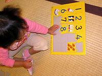 とーとーがインターネットをしていると、ときどきぴーたーが邪魔しに来ます。そんな時はアンパンマンのホームページで仲間さがしゲームをやらせます。飽きずに何度も繰り返しゲームをやっています。ゲームは、トランプの神経衰弱の要領で、アンパンマンのキャラクター同士を組み合わせるもの。ぴーたーにはまだ難しいので、とーとーがどこをクリックすればよいかマウスを動かしてやります。マウスを動かすのはまだぴーたーには無理ですが、クリックは小さい手で上手にやっています。