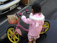 ねーねーのお古のキック・ボードが裏庭にあるのを見つけたぴーたー。乗って遊びたいと言うので引っ張り出して自宅前にて乗ってみました。